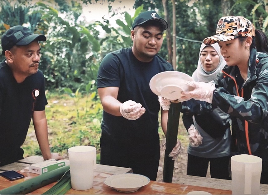Karen and Alex of the Eat.What.Now food channel sampled farm-to-table dishes in Tutong, where farms have opened their doors to visitors to learn traditional cooking and handicrafts and sample rural life. The blogger duo foraged for fresh ingredients for their cooking class at Lamin Warisan, made crafts from coconut shells and bamboos at Lamin Kampung’s workshop, visited the Tasbee Meliponiculture Farm, and engaged with the Dusun community at Alai Gayoh.