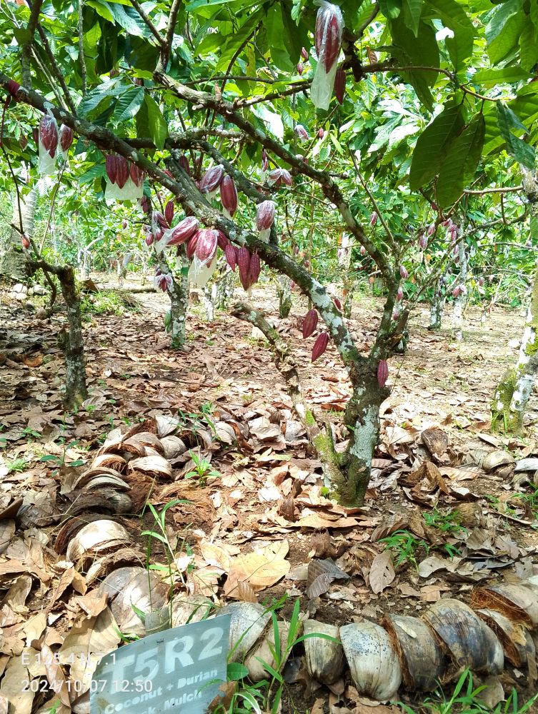 In 2022, the University of Southern Mindanao (USM), a state university in Cotabato province, conducted field studies and experiments to help smallholder farms become climate-resilient and sustainable by providing site-specific technologies and building capacity for producing high-quality cacao beans. It looked at nature-based solutions and ways to improve water and soil management using locally available resources to keep costs low. Farm inputs used include coconut and durian husks, which were used as mulch to suppress weed growth, retain soil moisture, moderate soil temperature, and prevent erosion.